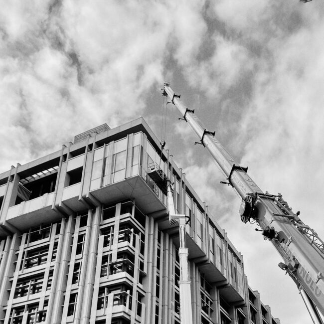 vetrate su facciata continua, sono state sostituite in quota, con l’utilizzo di autogrù